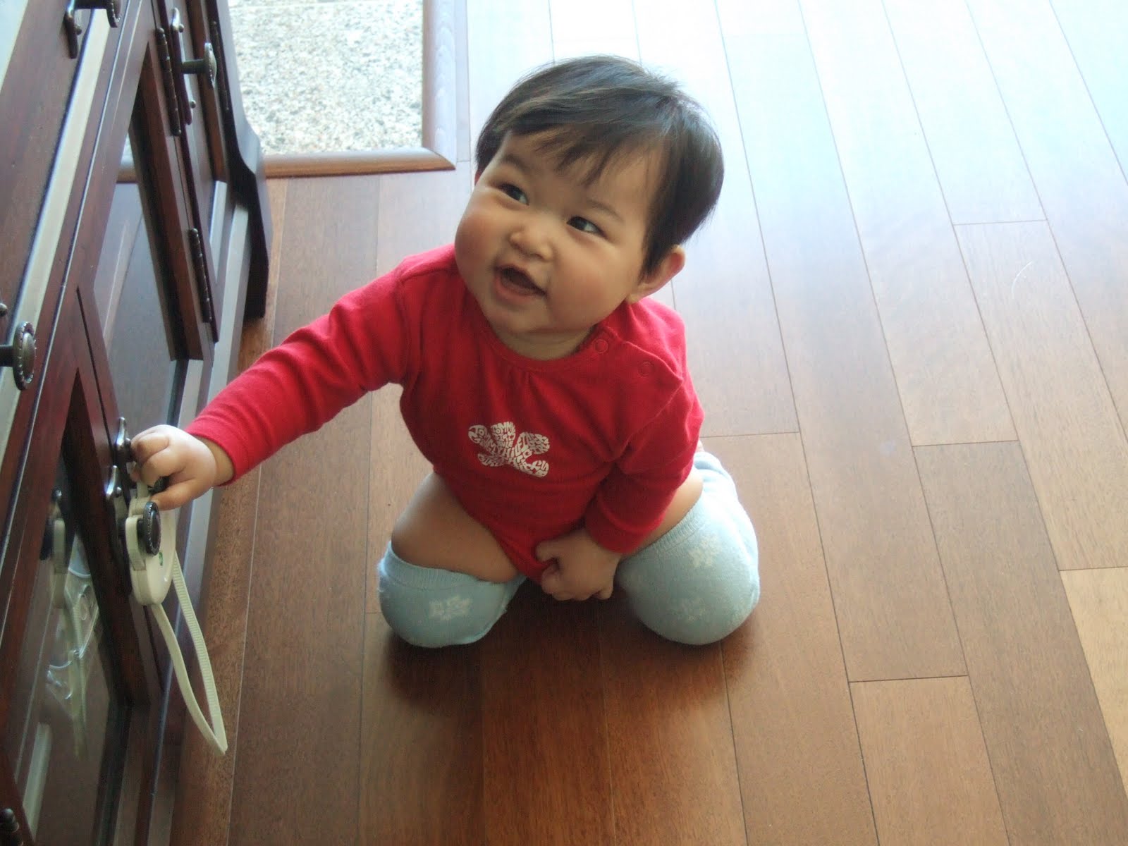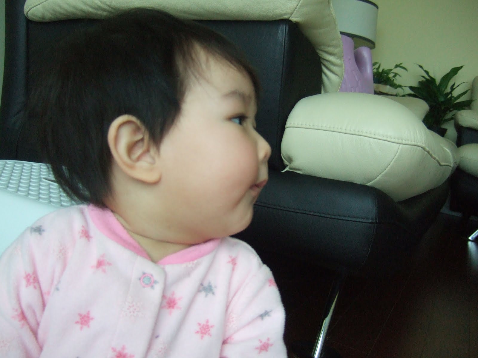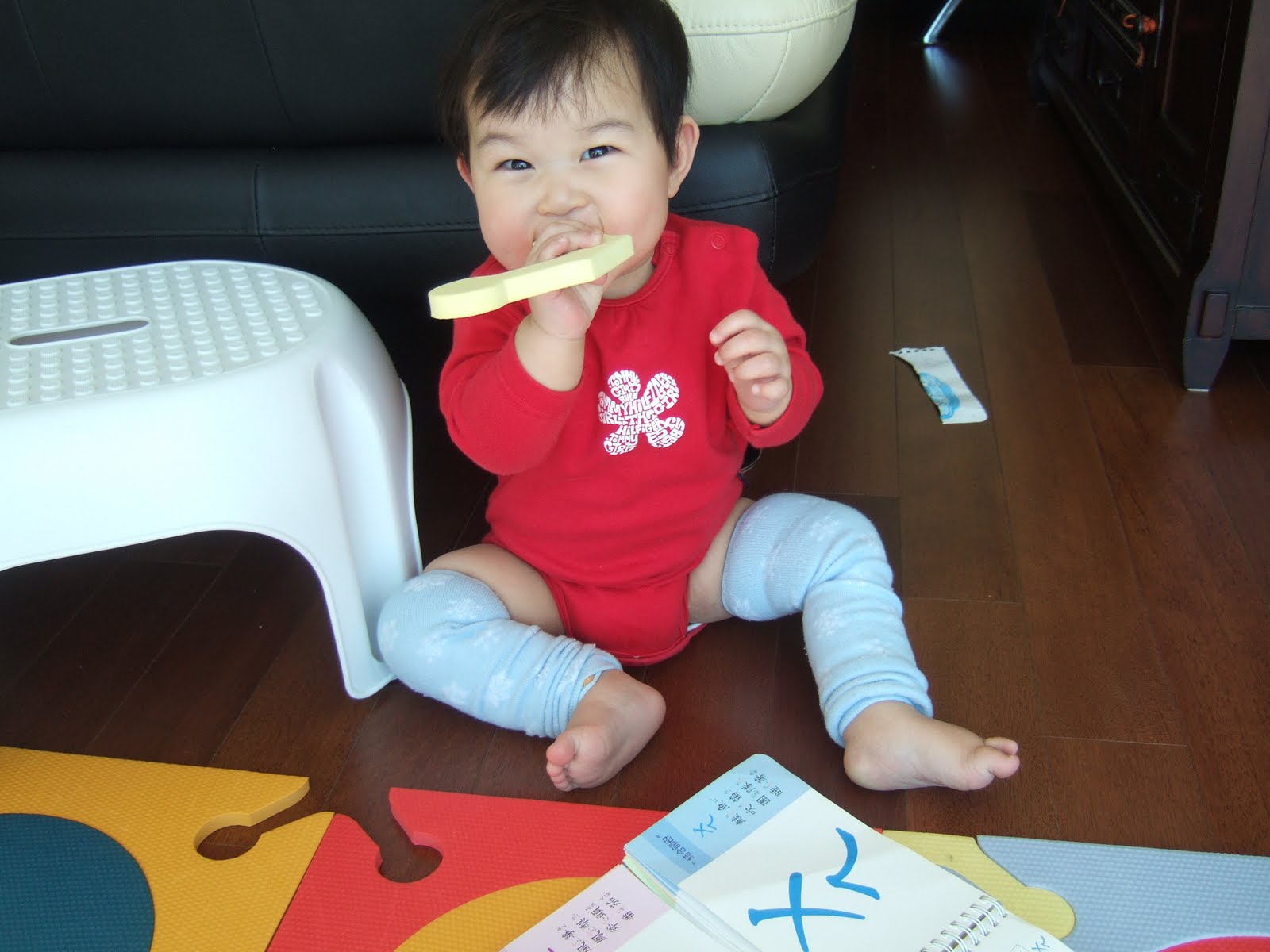 還好我們家室內沒擺植物 要不然以歐文愛吃的個性 一定也會吃泥土跟葉子 @@ 小妞的視線範圍跟他碰觸到的地方盡量不要放小東西喔~ 因為怕他會塞近嘴巴裡